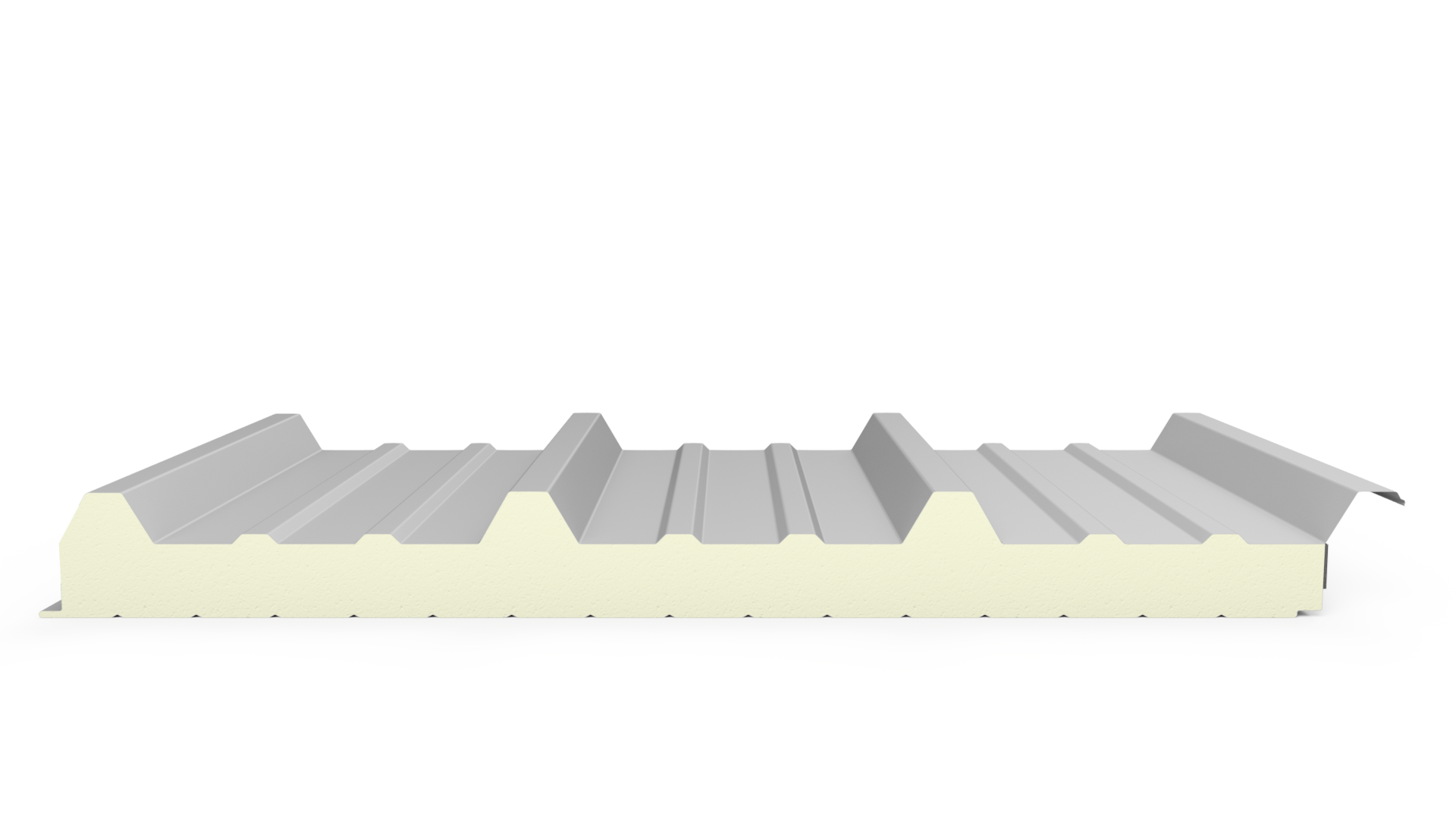 Panel metálico para cubiertas tipo sándwich, inyectado en línea continua con Poliuretano (PUR) o Poli-isocianurato (PUR) expandido de alta densidad (38kg/m3), cara externa y cara interna en lámina de acero galvanizado pre pintado, aluminio y/o Aluzinc.